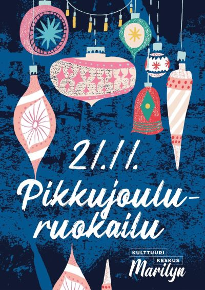 Tule viettämään pikkujouluja ystävien tai työporukan kanssa. Rajoitettu määrä paikkoja, osta lippusi ajoissa. Buffet ruokailu aulassa klo 18-20
